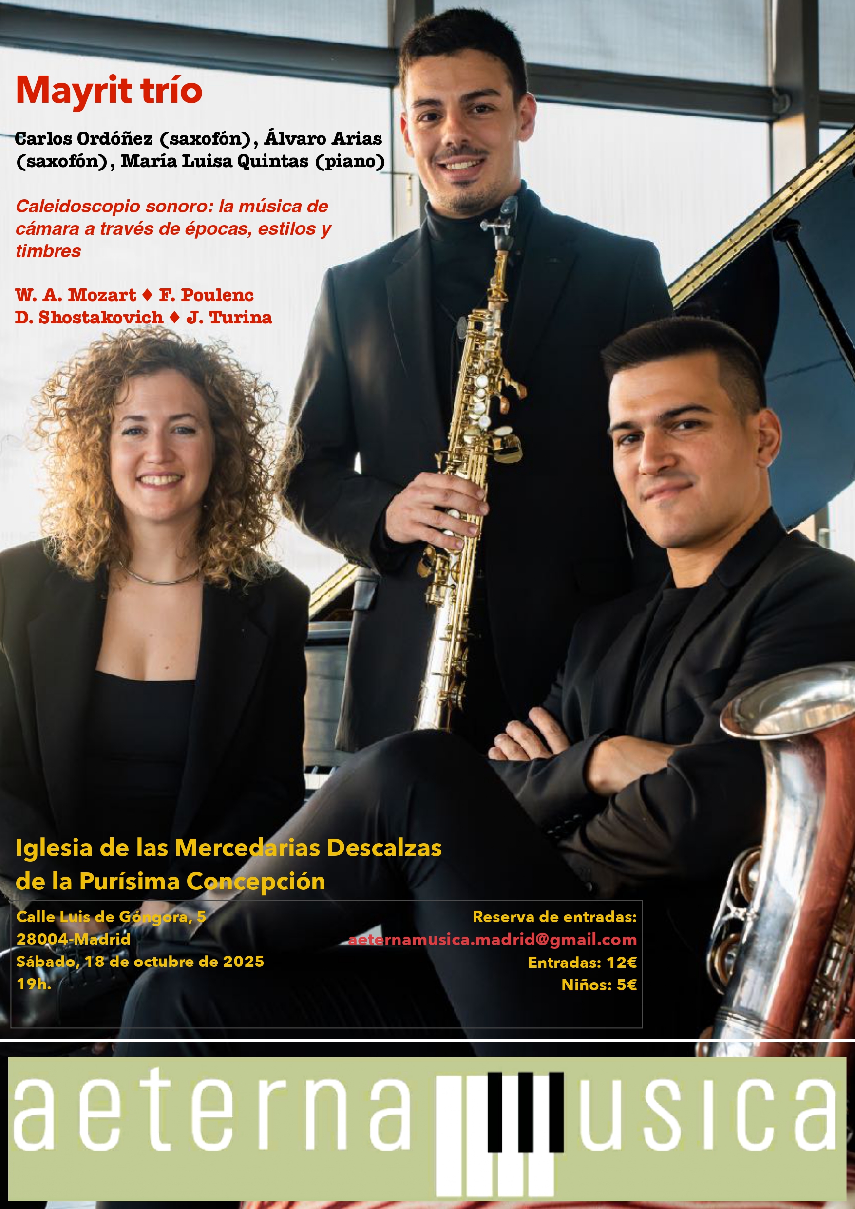 Mayrit Trío inaugura la temporada 2025-26 correspondiente al XIII Ciclo de Conciertos de Aeterna Musica con un concierto titulado Caleidoscopio sonoro: la música de cámara a través de épocas, estilos y timbres.