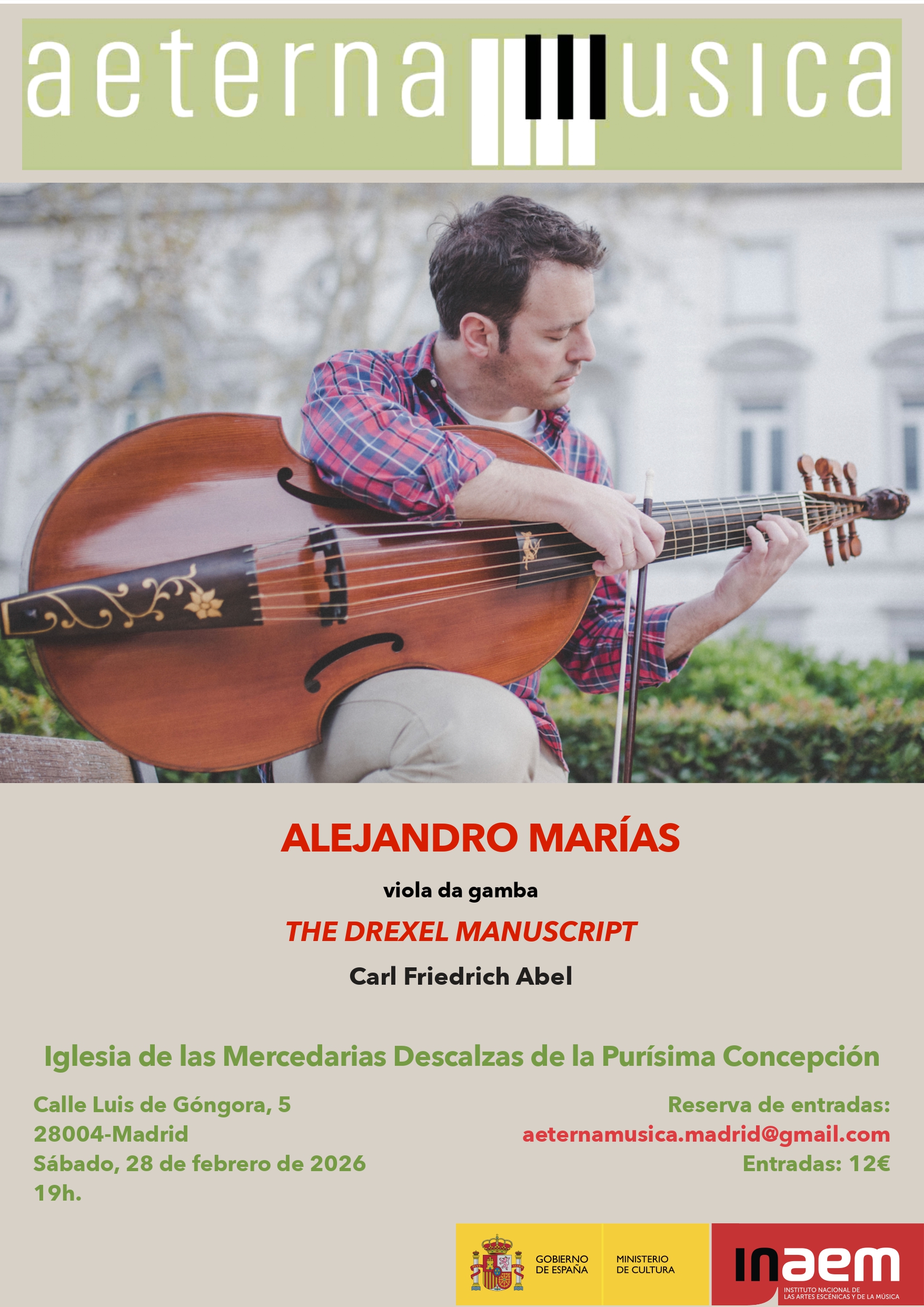 El violagambista Alejandro Marías nos invita a un viaje sonoro excepcional con un concierto dedicado íntegramente a The Drexel Manuscript, la fascinante colección de 29 piezas para viola de gamba sola compuestas por Karl Friedrich Abel (1723-1787).